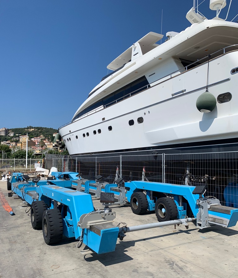 Мы не стоим на месте и постоянно развиваемся, улучшая условия для наших клиентов. Благодаря приобретению нового 70-тонного яхтенного транспортера, вдвое возросли технические мощности и возможности нашего порта. Новый транспортёр оснащен удлинителями цилиндров, за счет которых мы сможем беспроблемно осуществлять транспортировки парусных яхт.